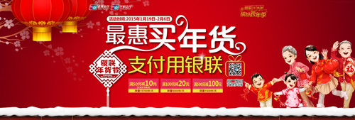 2) 抽奖活动所获立减资格,和中奖时支付的银行卡绑定,在下次用同张卡支付时,金额需大于10元,且需在支付过程中勾选“年货节10元立减资格”,方可享受立减。10元立减资格有效期至2015年3月15日。
