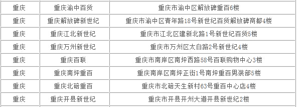 5、博格西尼重庆门店列表如下: