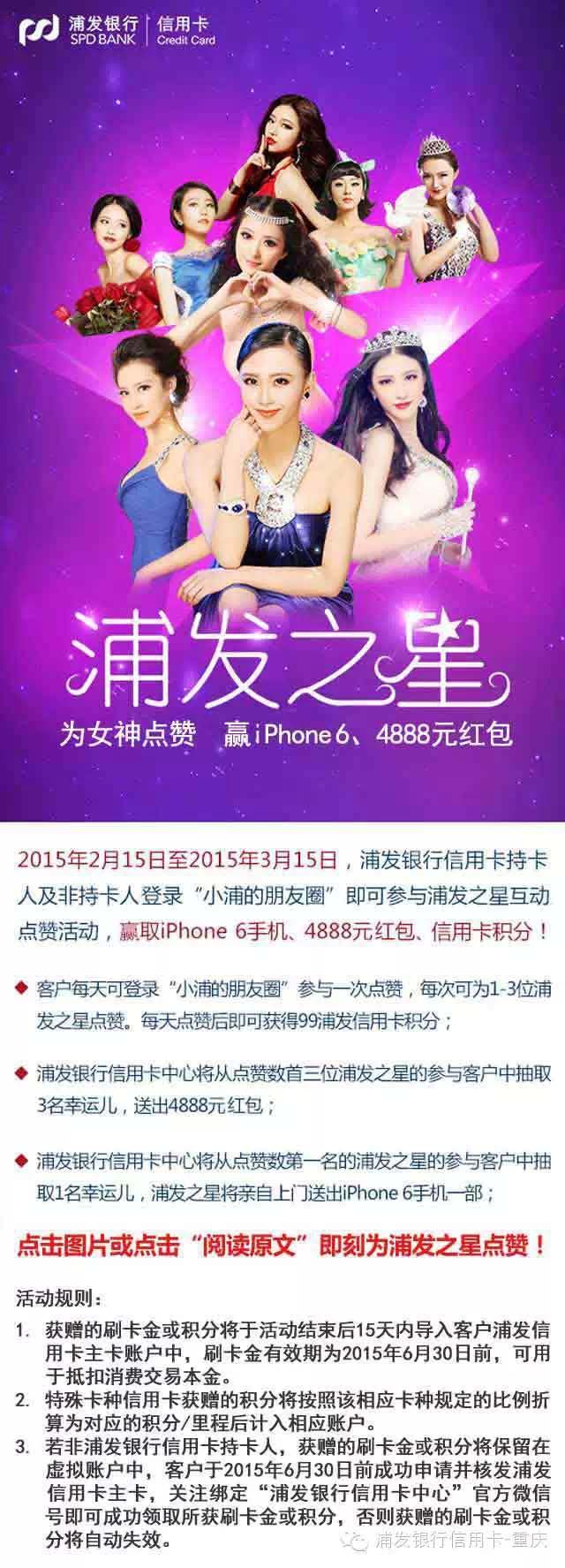 其他】为浦发之星点赞,赢iPhone 6、4888元红包!