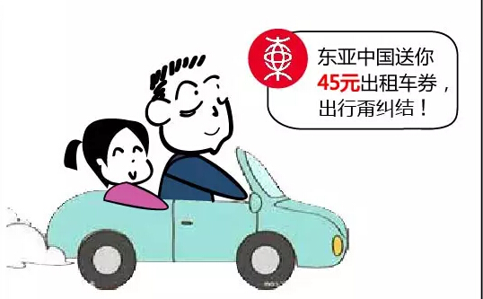 即日起至2015年6月30日,首次签约东亚中国手机银行,就能获得45元滴滴出租车券(分为3张15元,2个月的使用有效期哦),每人限得一份。先到先得,抢完就没咯!