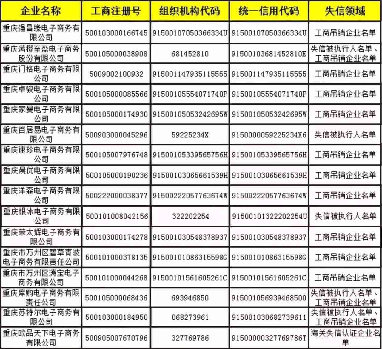 从“黑名单”上看,重庆地区有16家企业被拉黑!