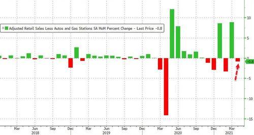 更糟糕的是,美国4月份核心零售销售数据环比下降0.8%,预期为增长0.3%。