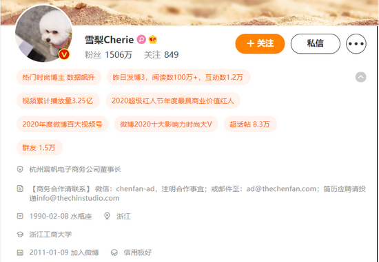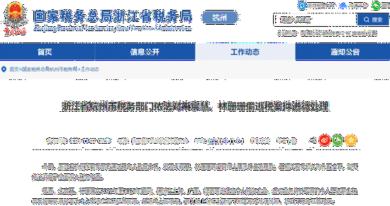 11月22日,杭州市税务局发布消息称,前期,浙江省杭州市税务部门通过税收大数据分析,发现朱宸慧(微博ID:雪梨Cherie)、林珊珊(微博ID:林珊珊_Sunny)两名网络主播涉嫌偷逃税款,在相关税务机关协作配合下,对其依法开展了全面深入税务稽查。