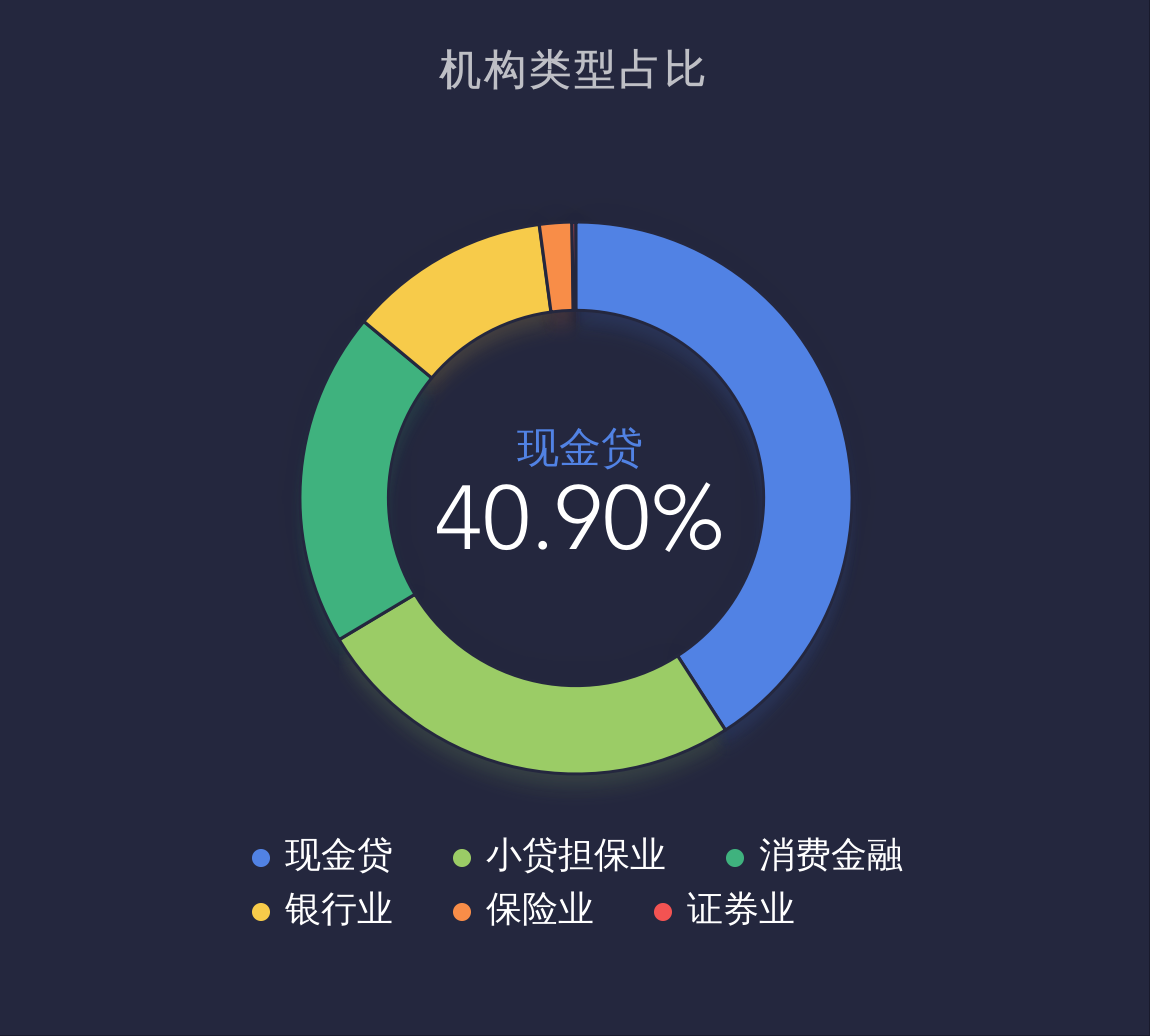 从机构类型上来看,现金贷有效投诉量173件,占40.9%,消费金融有效投诉量83件,占19.62%,小贷担保业有效投诉量108件,占25.5%,银行业有效投诉量50件,占11.8%,保险业有效投诉量8件,占1.89%。