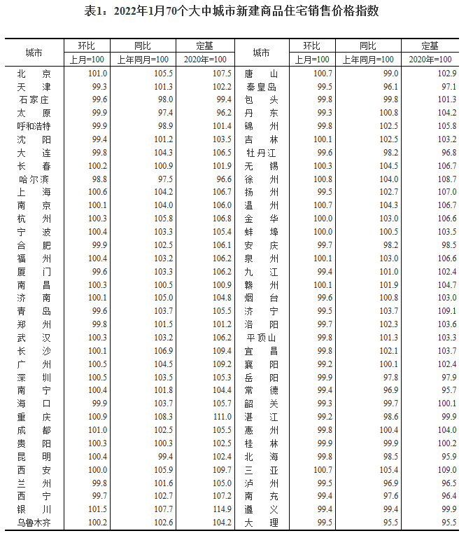 1月份,一线城市新建商品住宅销售价格环比由上月下降0.1%转为上涨0.6%,其中北京、上海、广州和深圳分别上涨1.0%、0.6%、0.5%和0.5%。